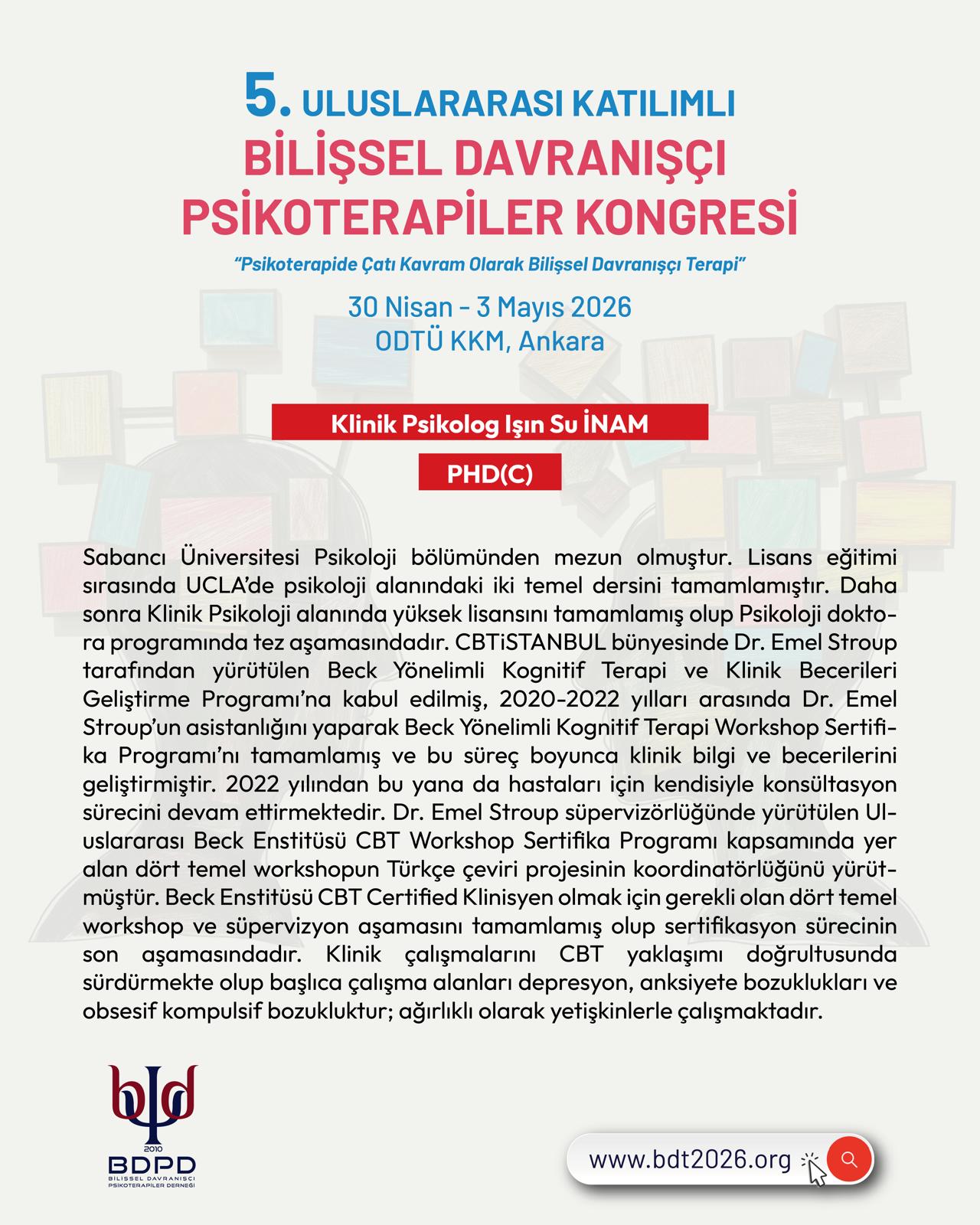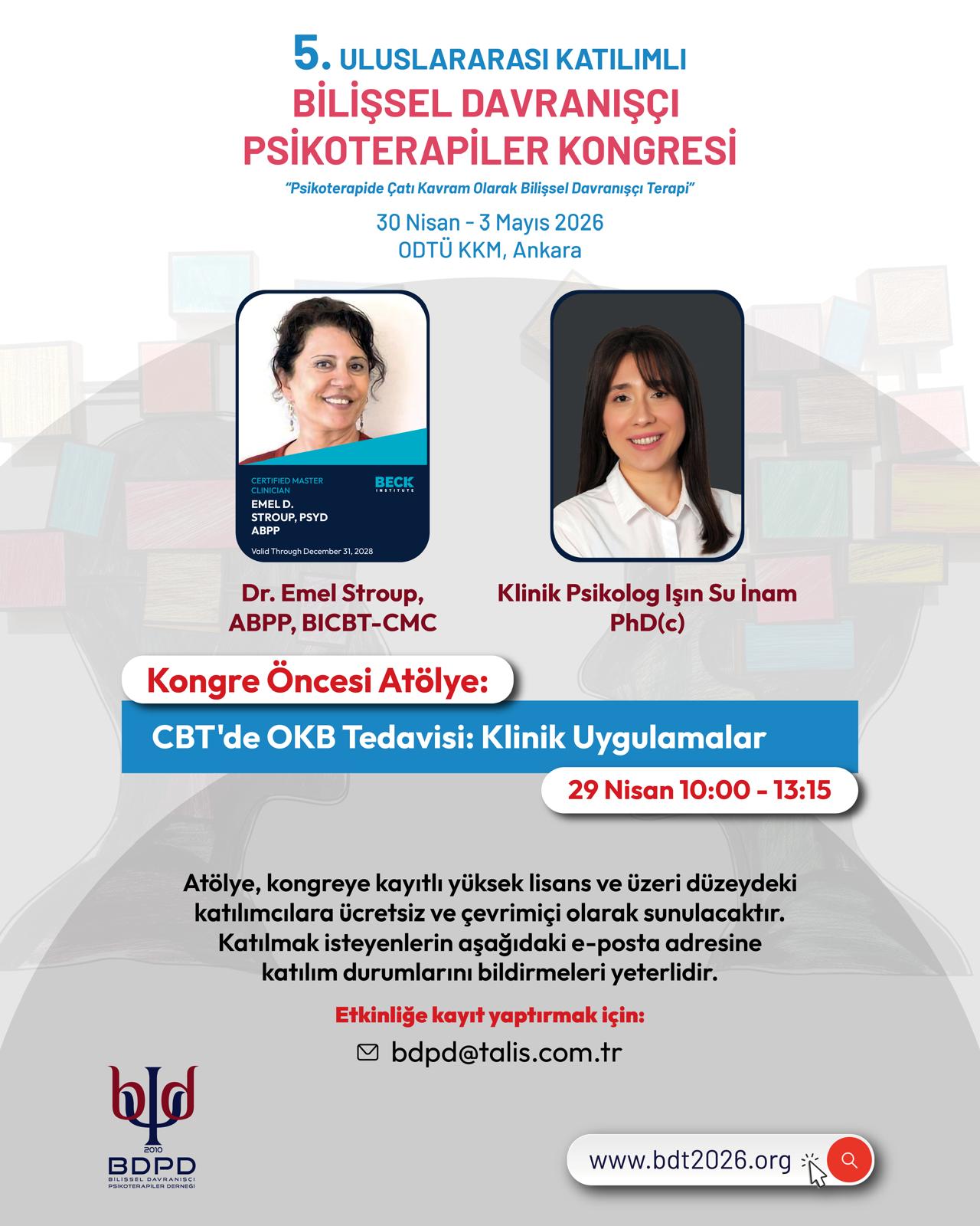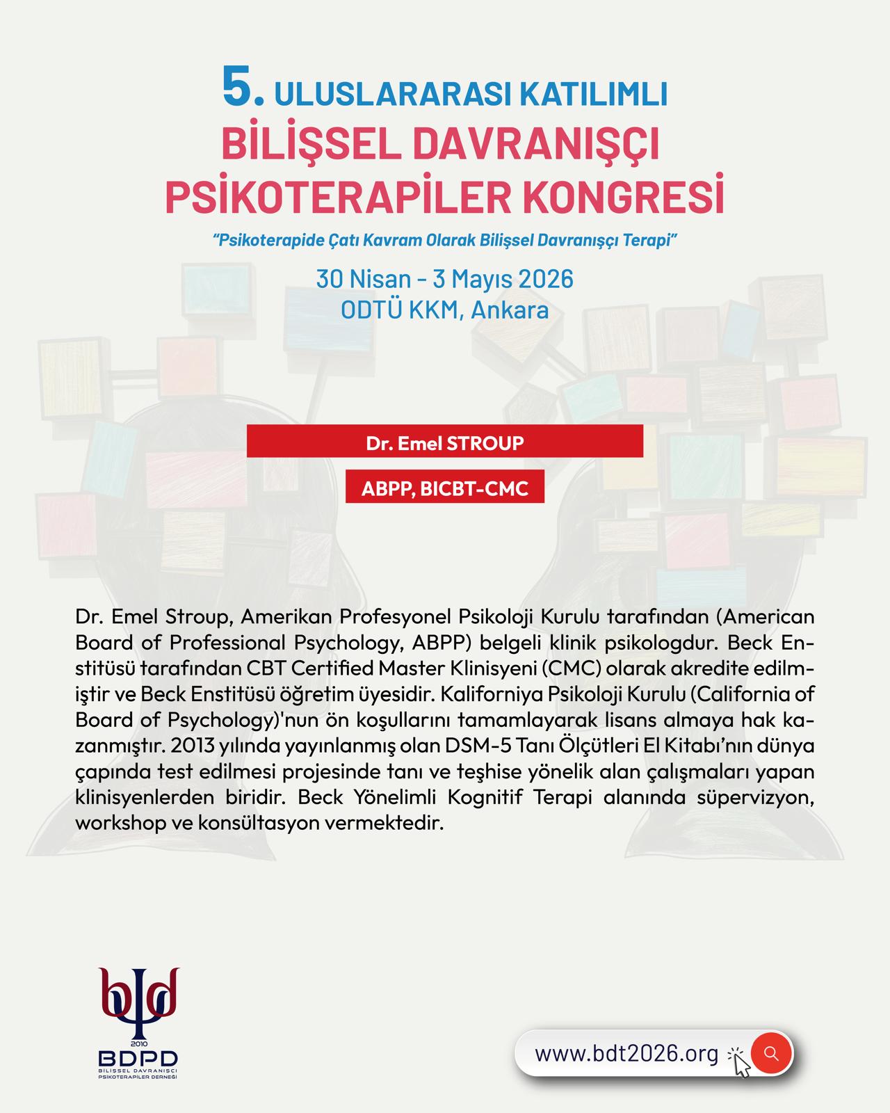 Kongre katılımcılarına özel Online Atölye 29 Nisan 2026 günü Emel Stroup tarafından yapılacaktır. Ayrıntılı bilgi için tıklayınız.